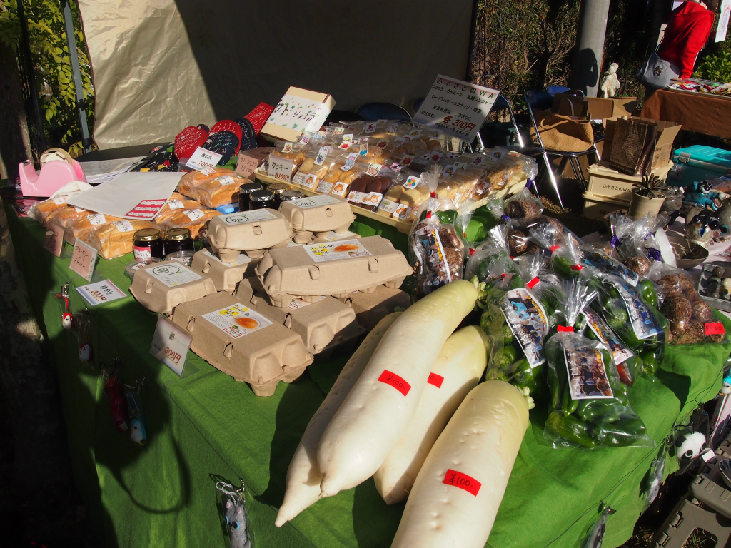 ふるさと学園さんで作っている野菜やたまご(日置市の特産品のオリーブを与えた鶏の卵も♪)、クッキーやケーキなどが並びました。