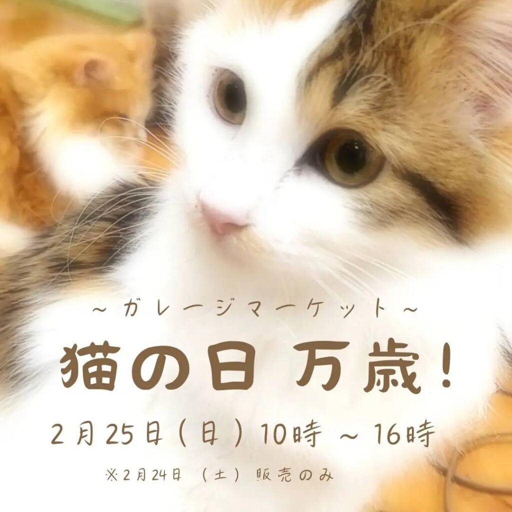 2024年2月24日~25日(日)10~16時に、ガレージマーケット~猫の日 万歳!~を開催します。 ※2月24日(土)は販売のみ行います お知らせ 2024.02.09 2024年2月24日~25日(日)10~16時に、ガレージマーケット~猫の日 万歳!~を開催します。 2月24日(土)は、販売のみ行います。25日は、お抹茶と猫モチーフの和菓子をどうぞ。 ぜひ、まうるーるへ遊びに来てください。